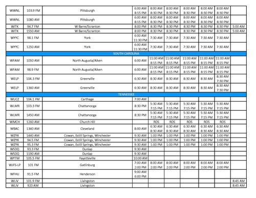 - Bluefield/Beckley W. VA / Tazewell, VA (WVNS, FOX-59.2, Sundays @ 8:00 AM)