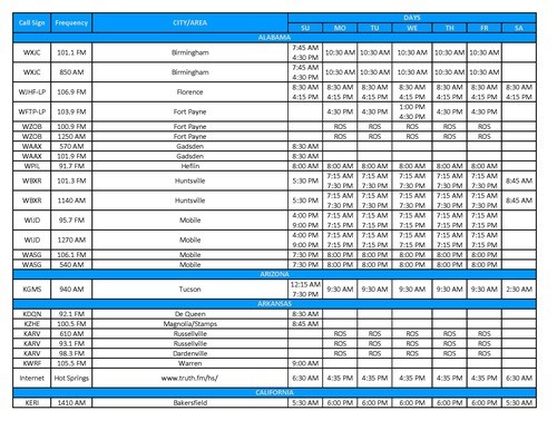 - Chattanooga, TN (WFLI, CW-53, Sundays @ 7:00 AM)