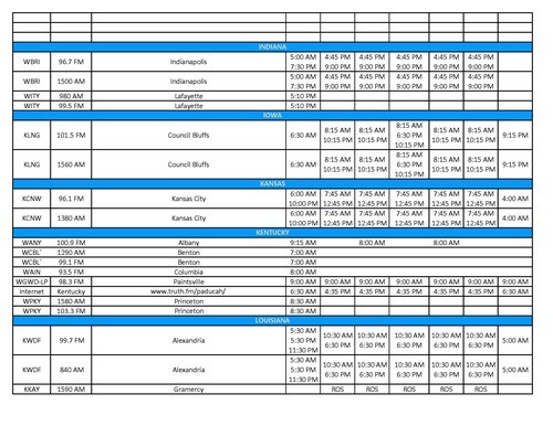 - Paducah, KY/Cape Girardeau, MO (WDKA, MyTV-49, Sundays @ 8:00 AM)