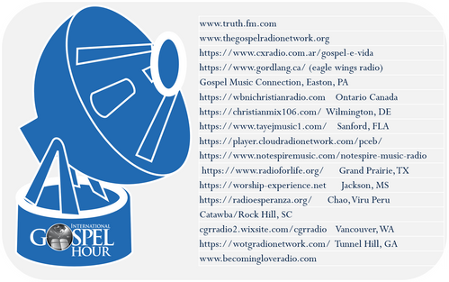You can now listen to International Gospel Hour on all major podcast platforms. Find us on over 25 platforms including Google Play, Amazon Music, Stitcher, Spotify, iTunes, TuneIn Radio, and iHeartRadio. Start streaming today by searching International Gospel hour on your favorite platform.